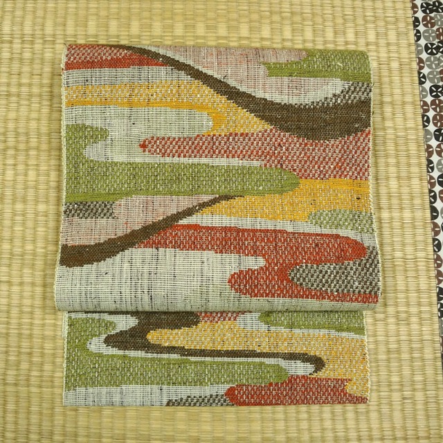 ・長さ:379cm ・幅:30cm ・素材:絹と、金・銀糸 結びジワがあります。 胴巻の折り跡が斜めになっており、時計回りに巻くと表に来る側が狭めになっています。反時計回りに巻く場合は、支障ないと思います。 全体的な状態は綺麗だと思います。 ■状態ランク B A 新古品もしくは、それに近い美品 B 着用の際に目立つようなシミ汚れがなく、比較的状態の良いもの C 着用可能なシミ汚れではあるが、リサイクルに理解のある向け D 目立つシミ汚れがあるため、お直しやリメイク向け(着用は個人差による) ************************************* ※サイズは手作業で測っているため、若干の誤差があるかもしれません。 ※画像はなるべく実物と近くなるよう色調補正はしておりますが、モニターによって発色に個体差があるため、色や雰囲気が実物とやや異なる場合がございます。ご注意ください。 ※できる限り注意を払って検品し、シミや汚れ等を記載しておりますが、微小のダメージは見落としがある場合もございます。 また、汚れの感じ方には個人差がございます。リサイクル品であることをご理解いただきご購入をお願いいたします。ご了承ください。 ※リサイクル着物には素材の表示がなく、交織や絹に非常に近い質感の化繊の生地もあるため、判断がつかない素材もございます。 燃焼実験ができるものはしておりますが、表記が確実ではないことをご理解ご了承お願いいたします。