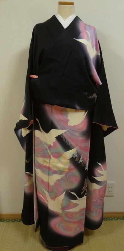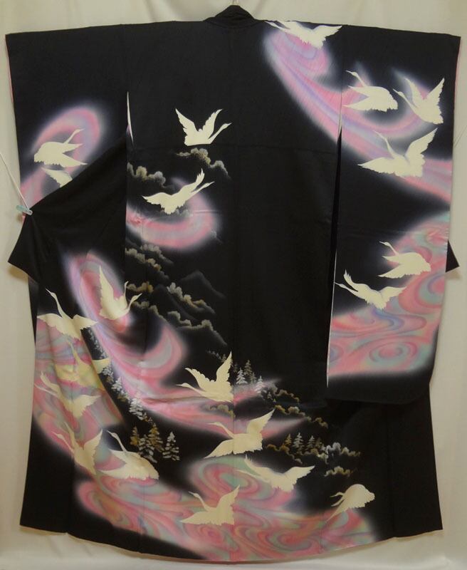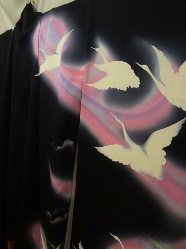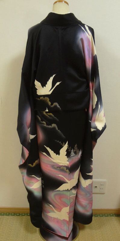 左裾の中央の鳥が黄色がかっていますが、塗料による作風です。