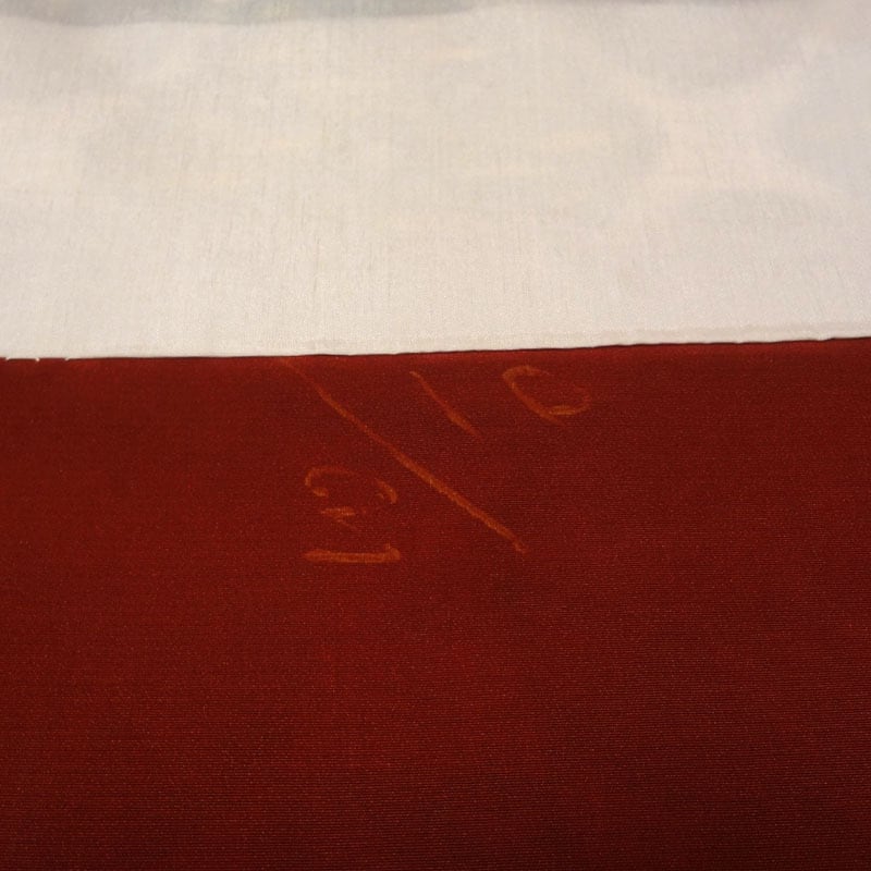 八掛に、汚れが少しあります。反物のメモ、判があります。