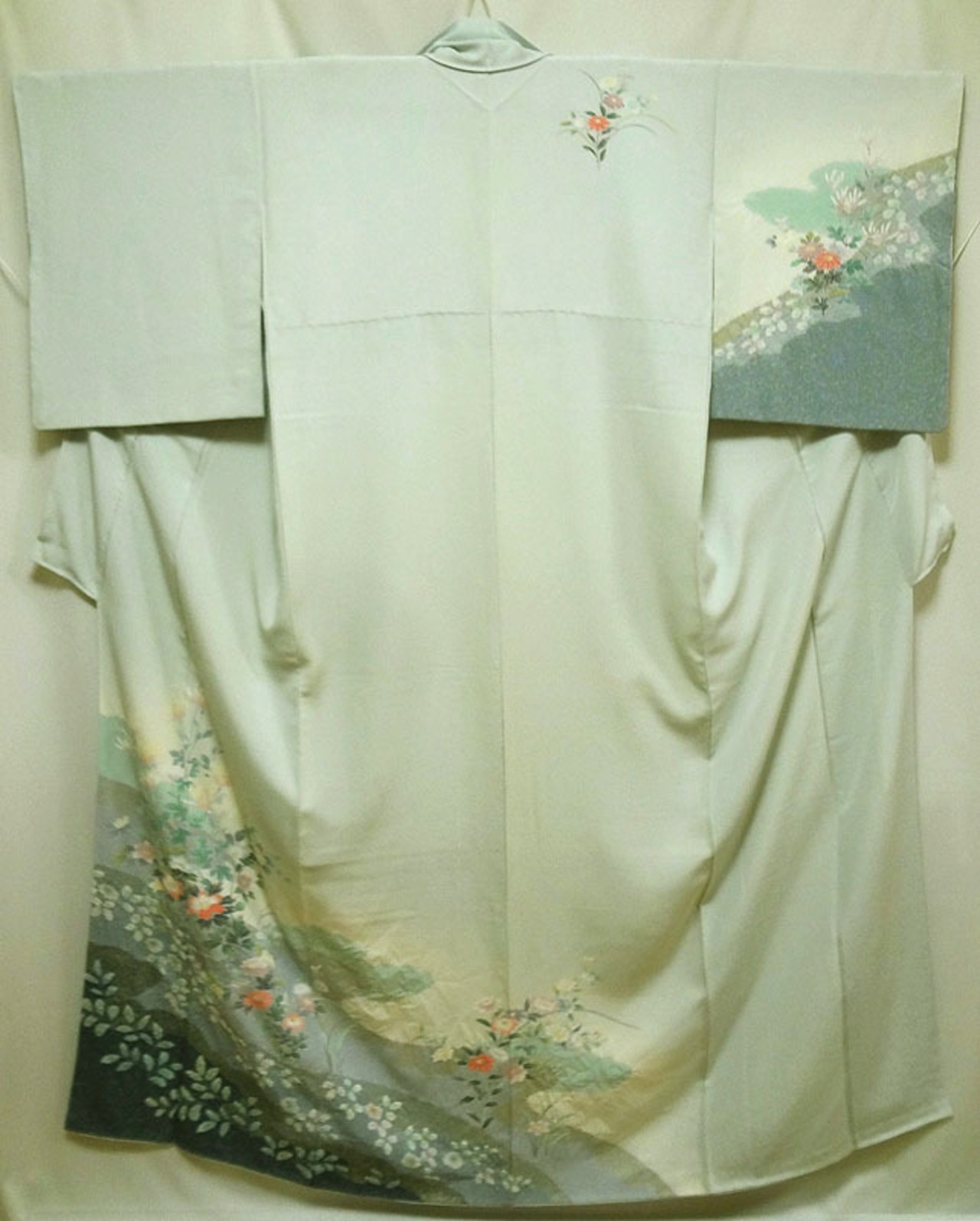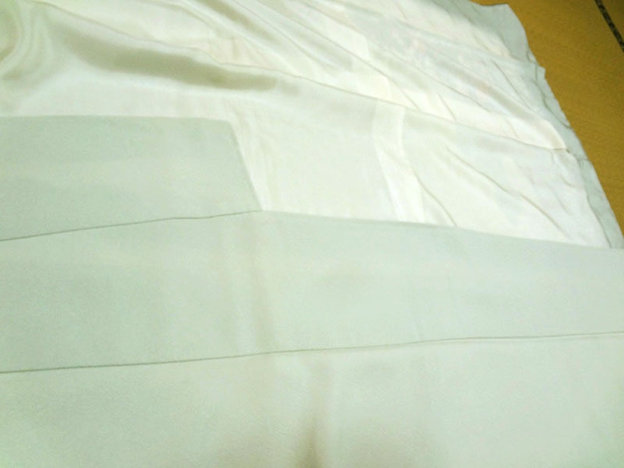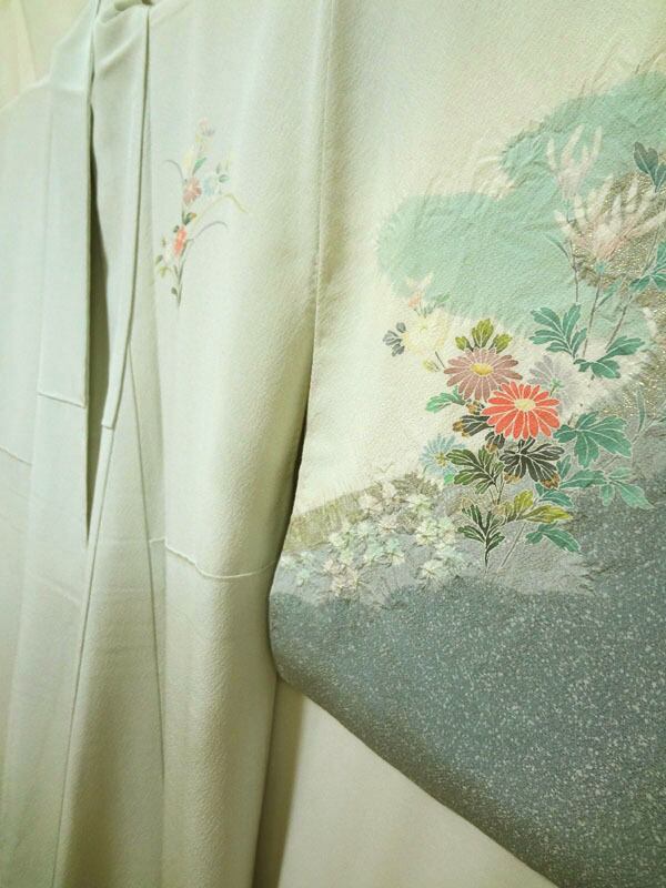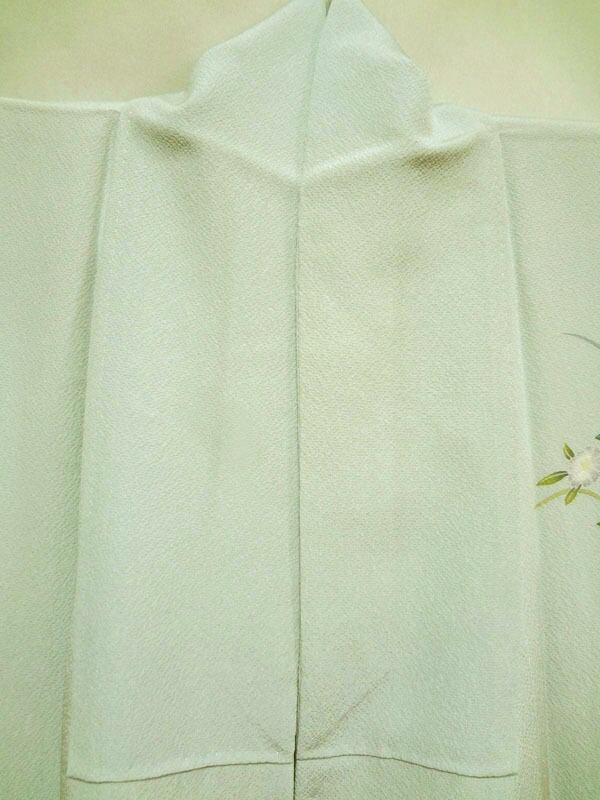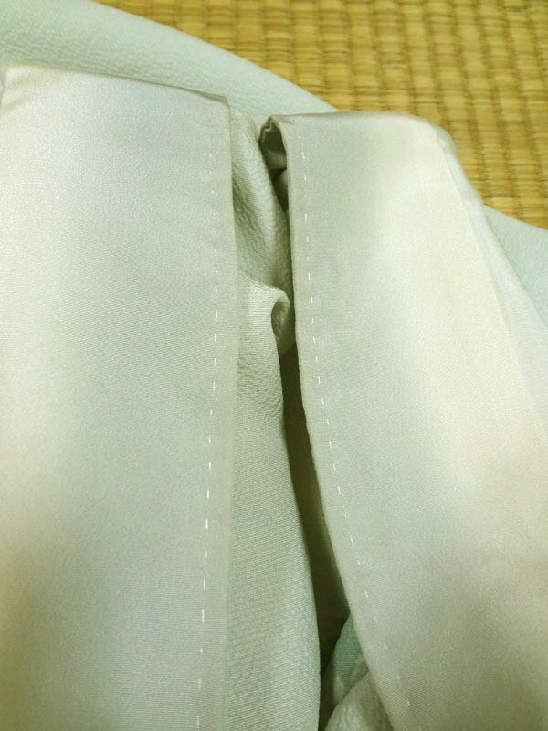 衿、袖、裾などの色が薄い箇所は、ヤケや汚れではなく、裏地(白)の重なりによるものです。