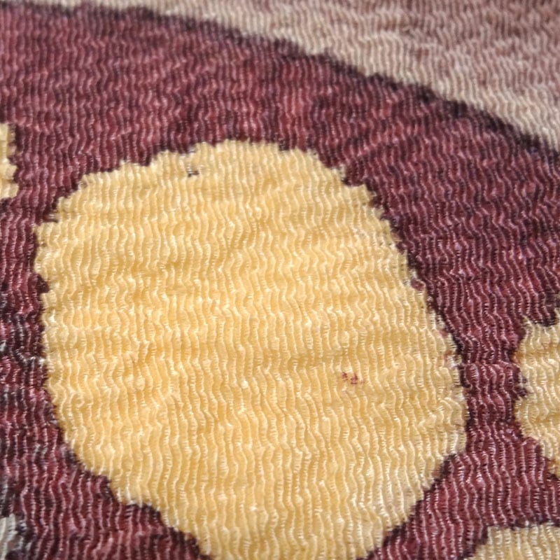 胴巻柄に染料飛びと染料移り、糸浮きが少しあります。