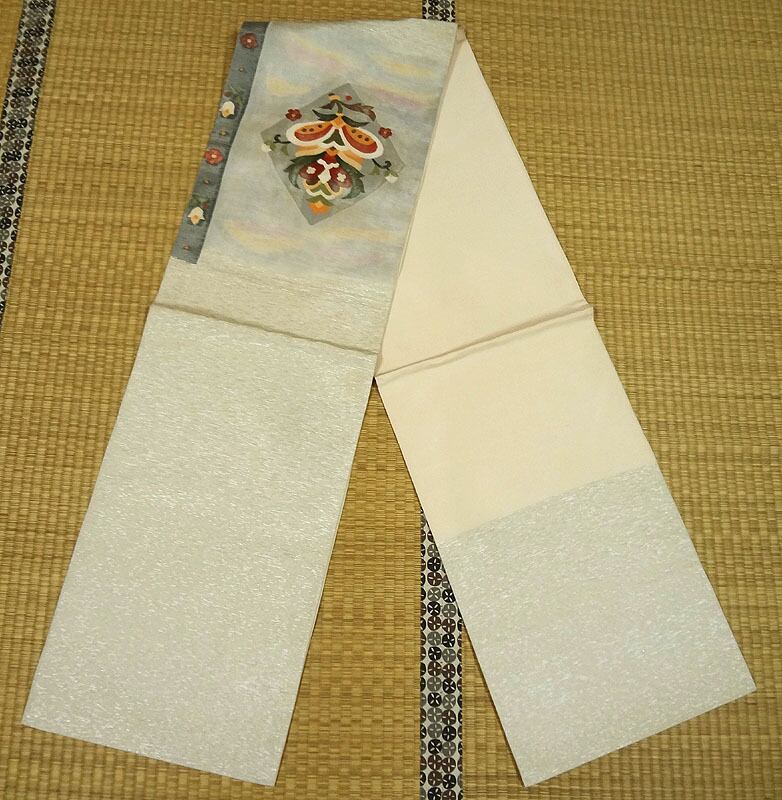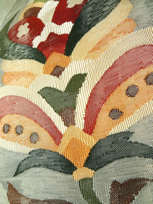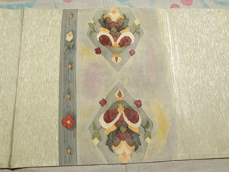 柄の部分以外は、銀糸が織り込まれています。