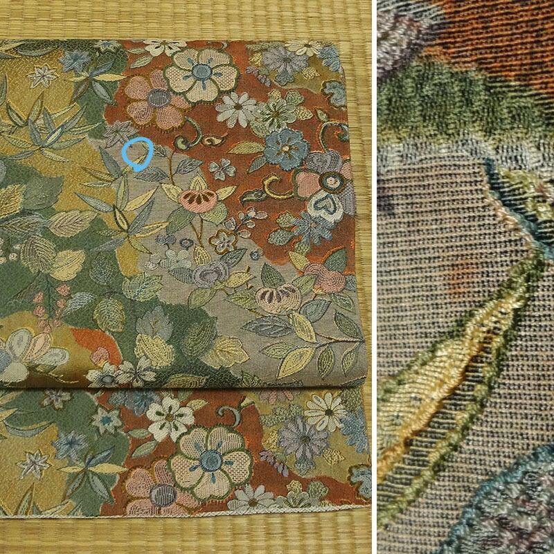 たれ先から145cmあたりにも朱色が付着している箇所があります。お太鼓の作り方によっては、見える位置かもしれません。