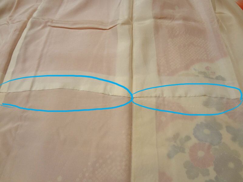 裏地(胴裏と八掛の間)に、修繕跡があります。