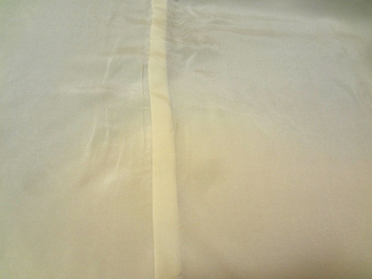 後ろ身頃の膝あたりの裏に、座りジワがあります。