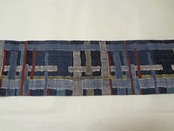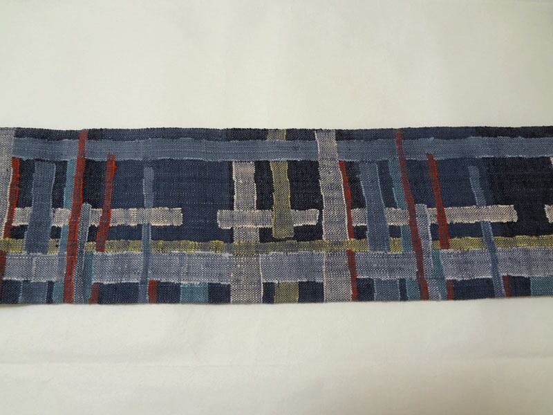 落ち着いた青色に交差の線 紬調 八寸名古屋帯