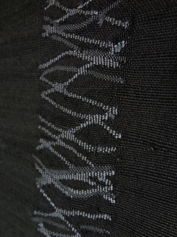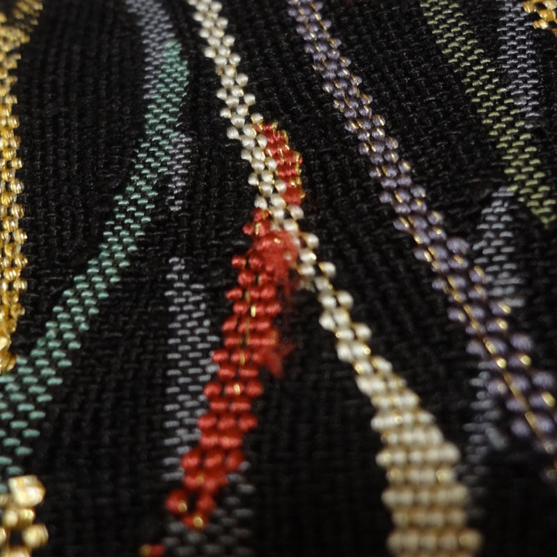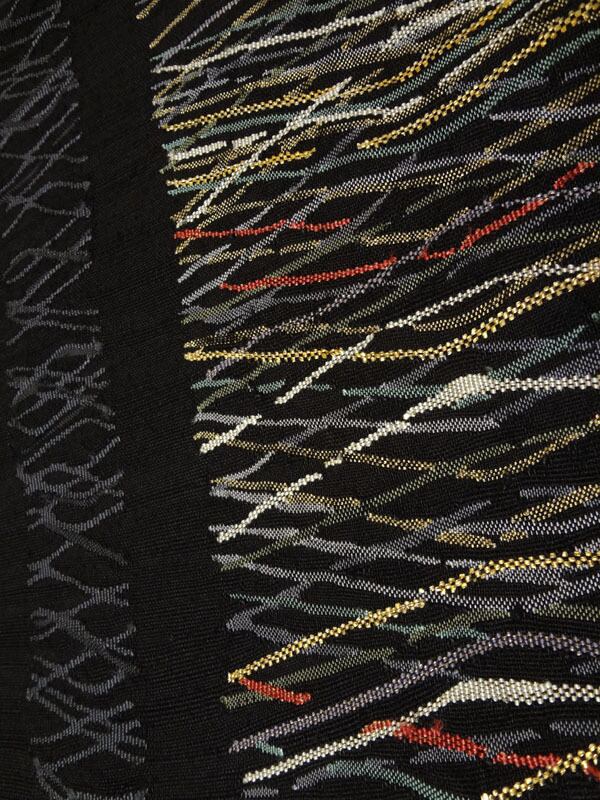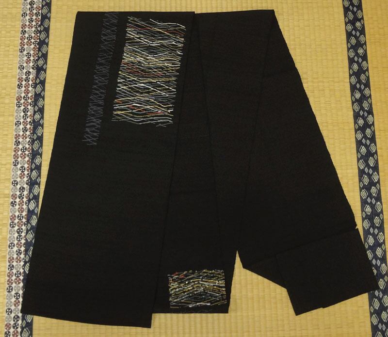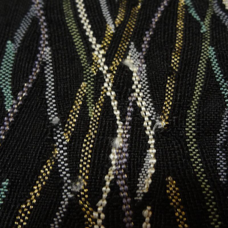 黒地に網のような柄 紬調 八寸名古屋帯(松葉仕立て)