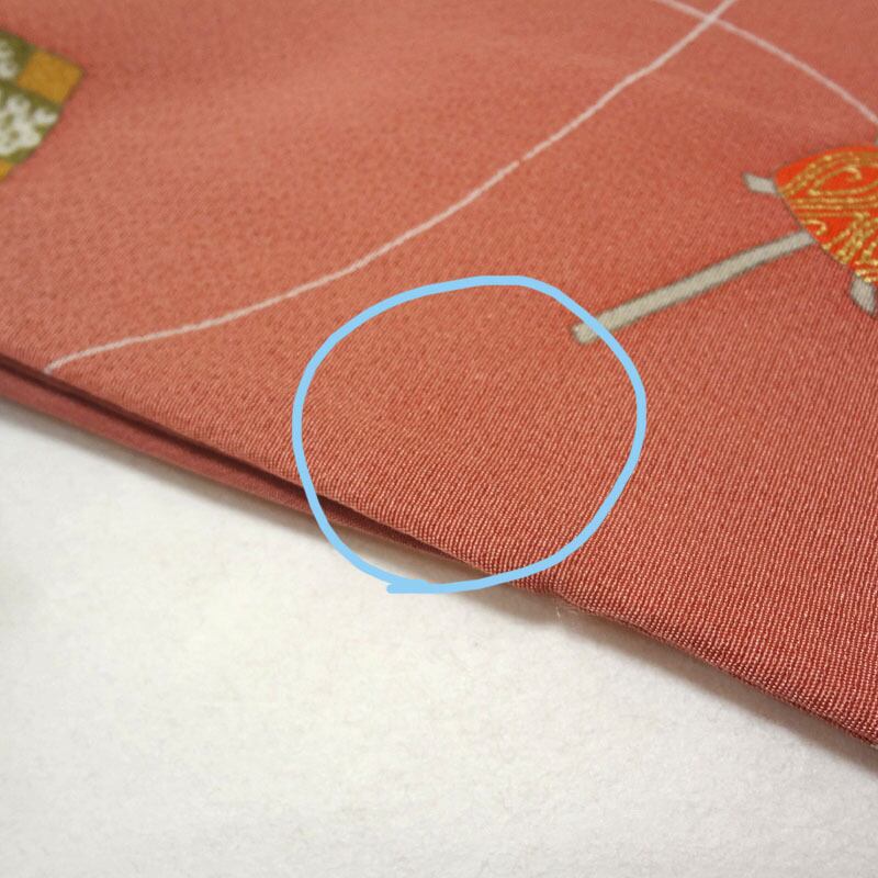 右衿に、小さな色ムラがあります。他にも小さな色ムラがちょこちょこあります。
