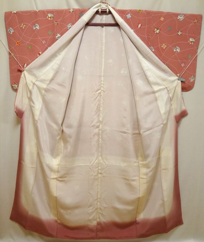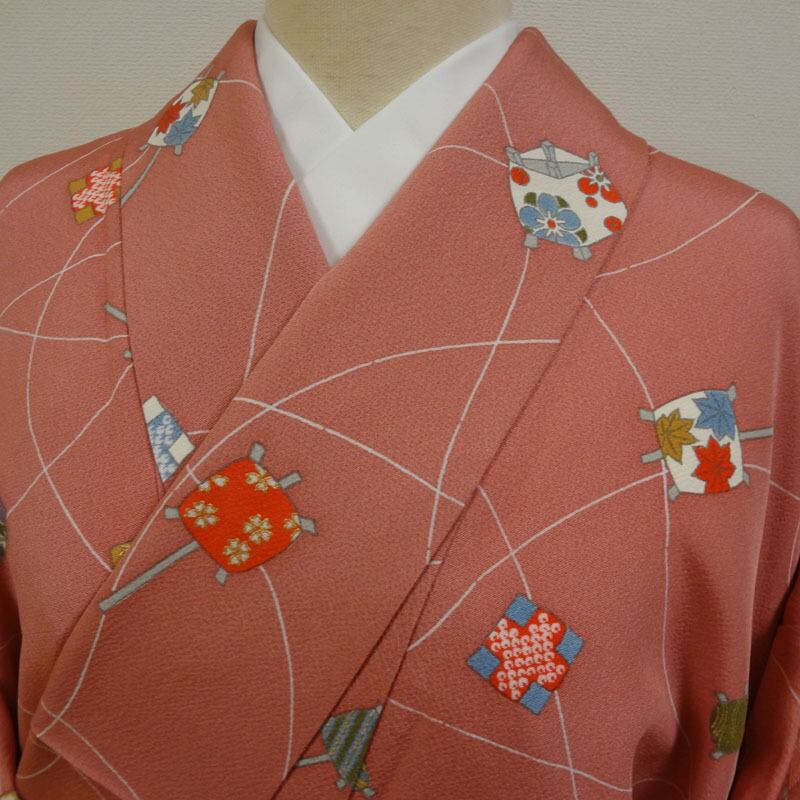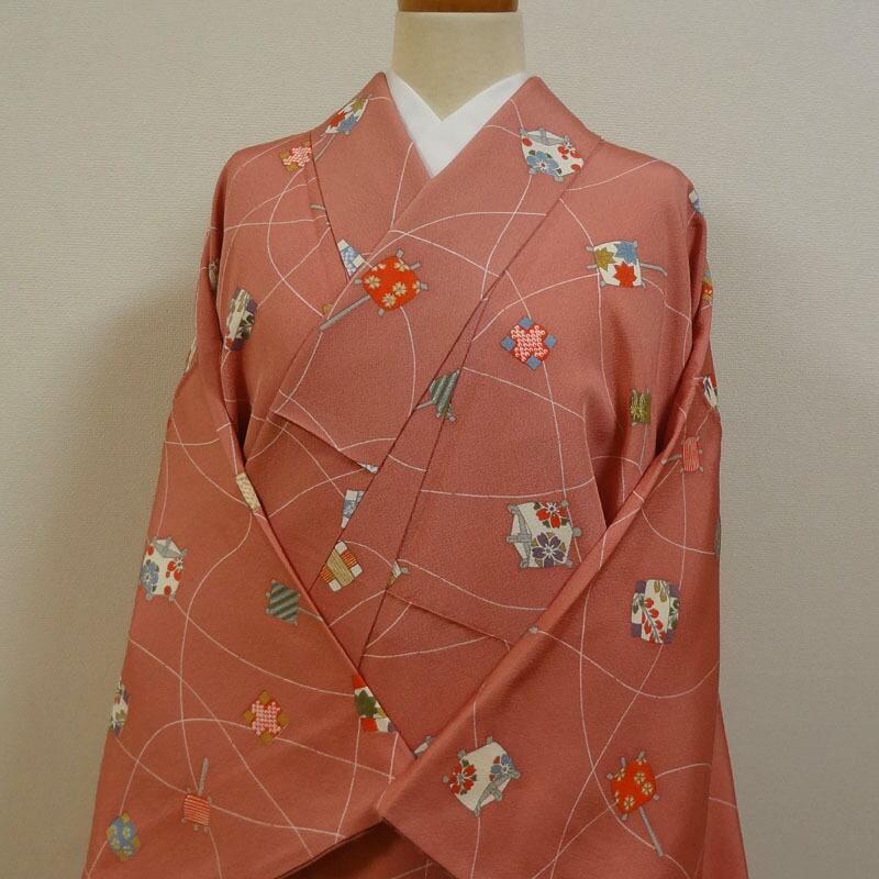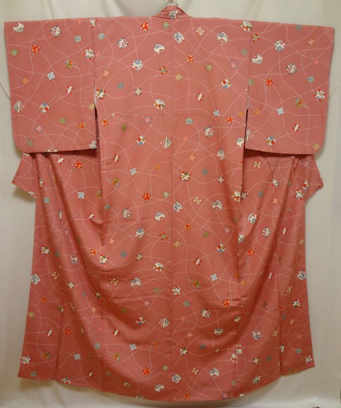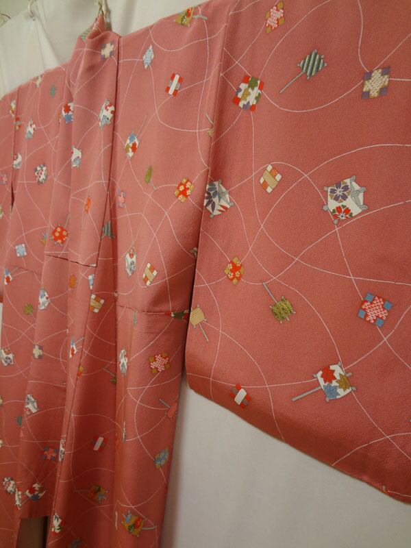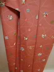 ピンクにレトロ器物模様 小紋