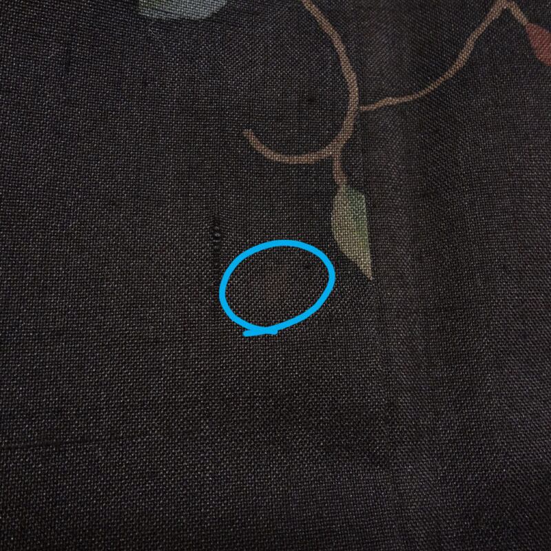 後ろ裾に、白い糸の筋が少しあります。