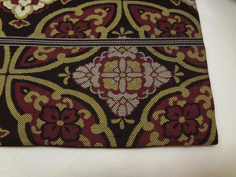 黒地に海老色の変わり七宝 アンティーク名古屋帯(開き仕立て)