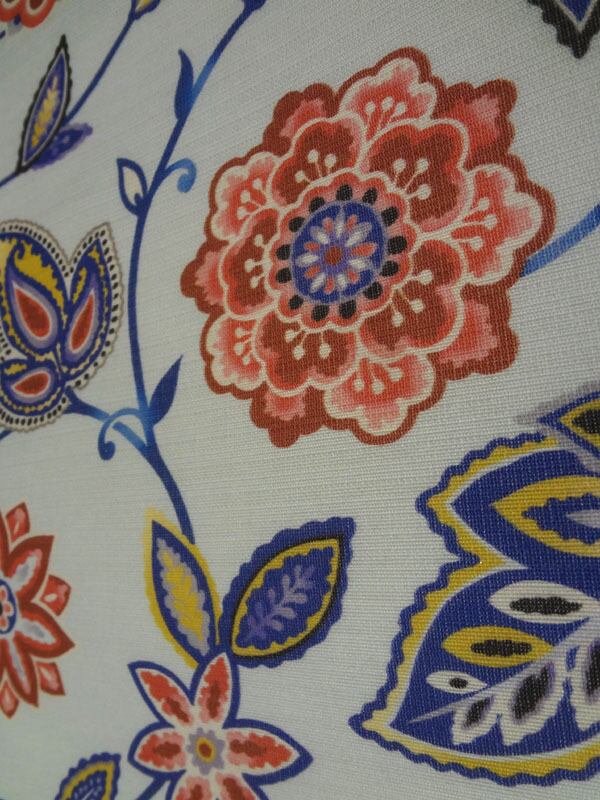 藍白色に赤い花唐草 京袋帯(全通)