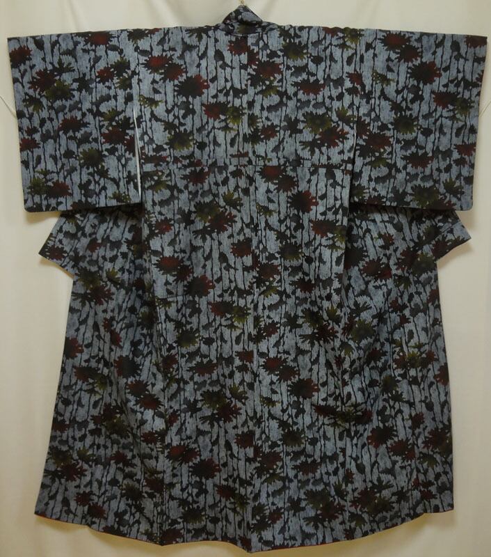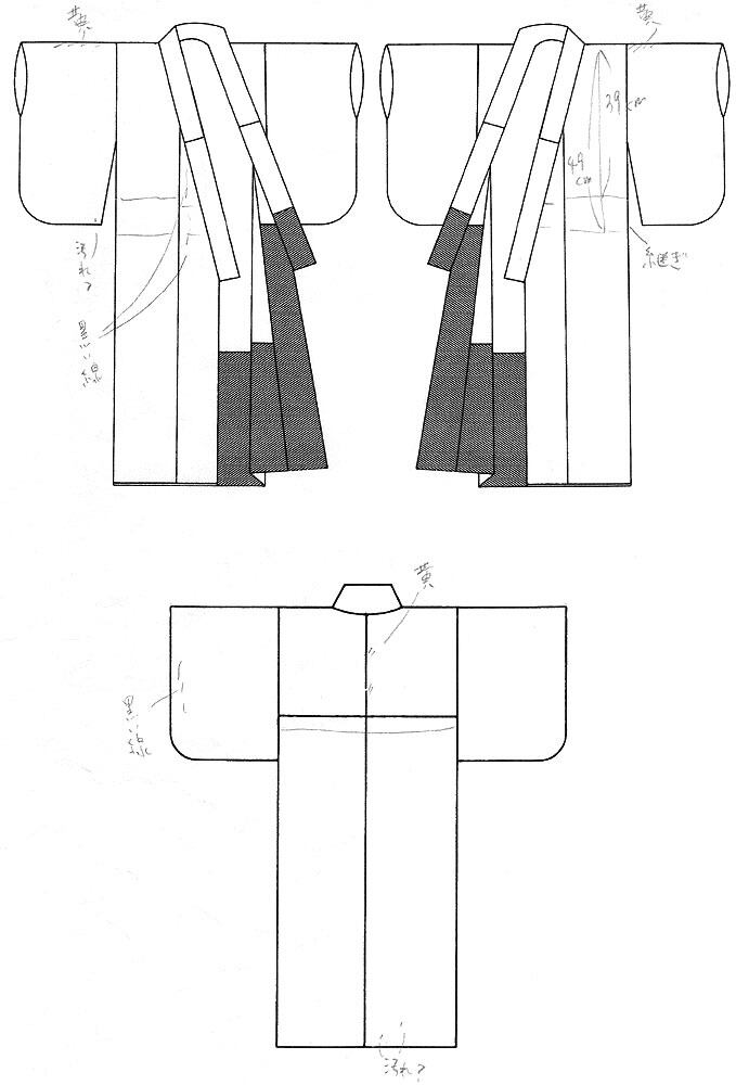 左袖と左衽に黒い線がありますが、汚れではなく染料です。