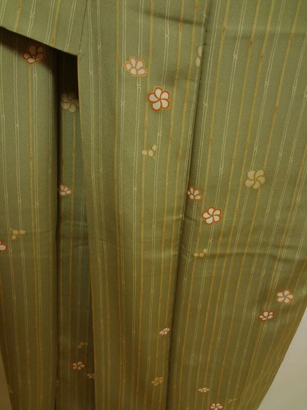 柳色に縦縞の竹と梅 小紋