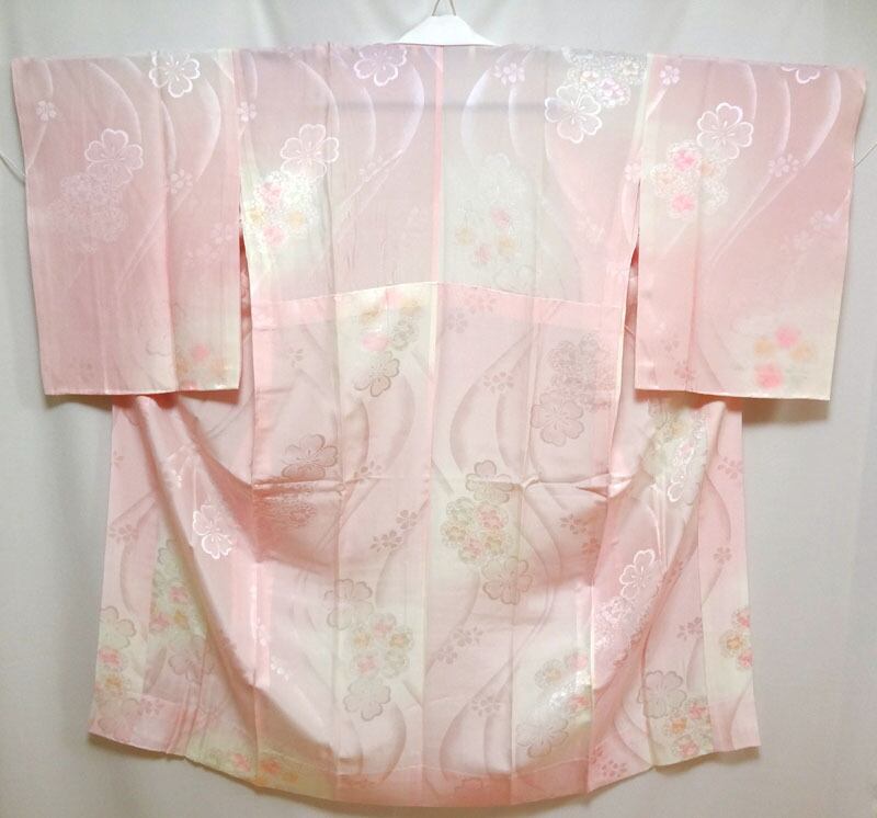 ピンクのぼかしに桜の地紋 長襦袢 胴抜き無双仕立て