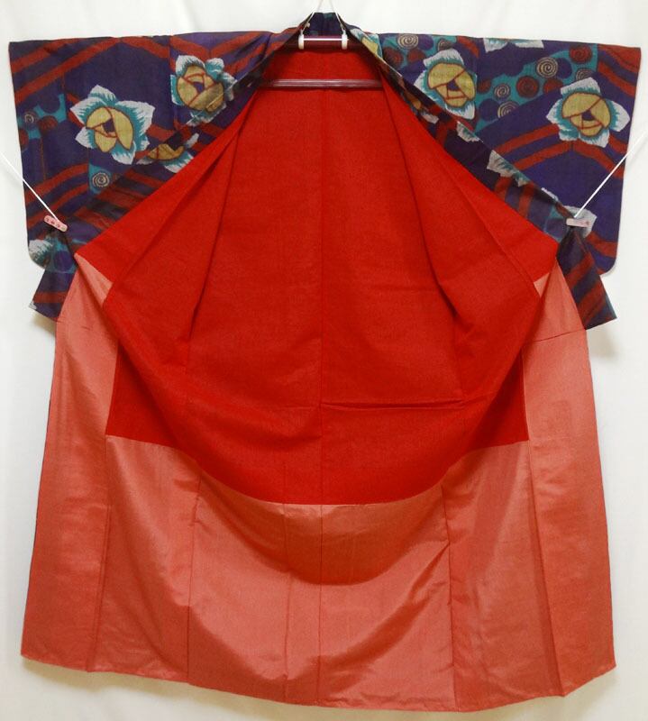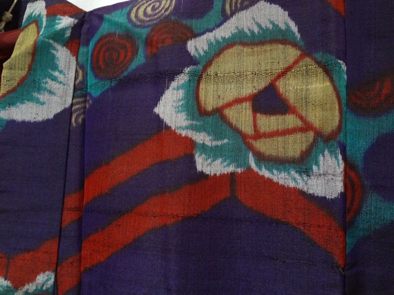 濃い紫色に大柄の花 アンティーク銘仙着物