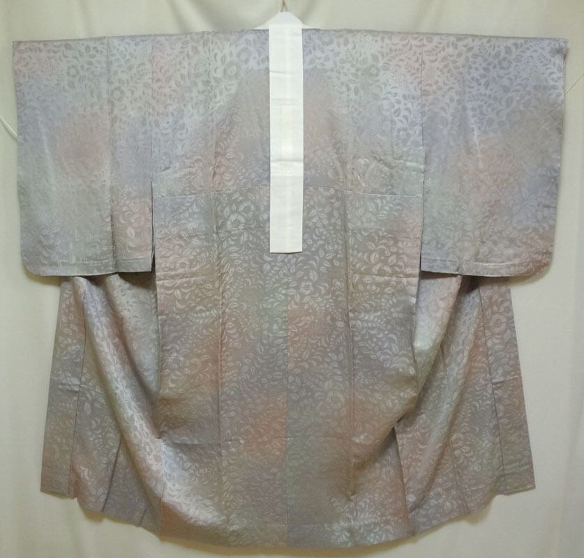単衣 紫に緑や橙のぼかしと草花の変わり地紋 長襦袢
